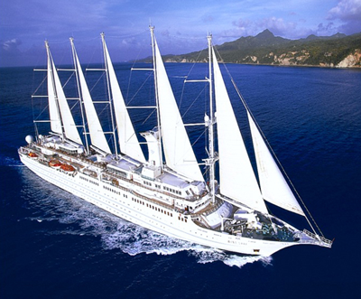 The Wind Surf is a sleek, five-masted sailing yacht accommodating 312 guests. With six decks and a gross tonnage of 14,745, the Wind Surf is the largest yacht in the Windstar fleet.